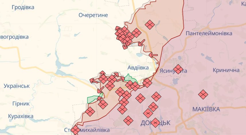 На Авдеевском направлении захватчики тоже задействовали авиацию для штурма Авдеевки, Северного и Первомайского Донетчины, но ВСУ отбили14 атак. Также российская армия нанесла авиационные удары в районах населенных пунктов Новобахмутовка, Ласточкино, Орловка. Артиллерийским и минометным обстрелам врага подверглись около десяти населенных пунктов области, в том числе Бердичи, Авдеевка, Северное и Первомайское.