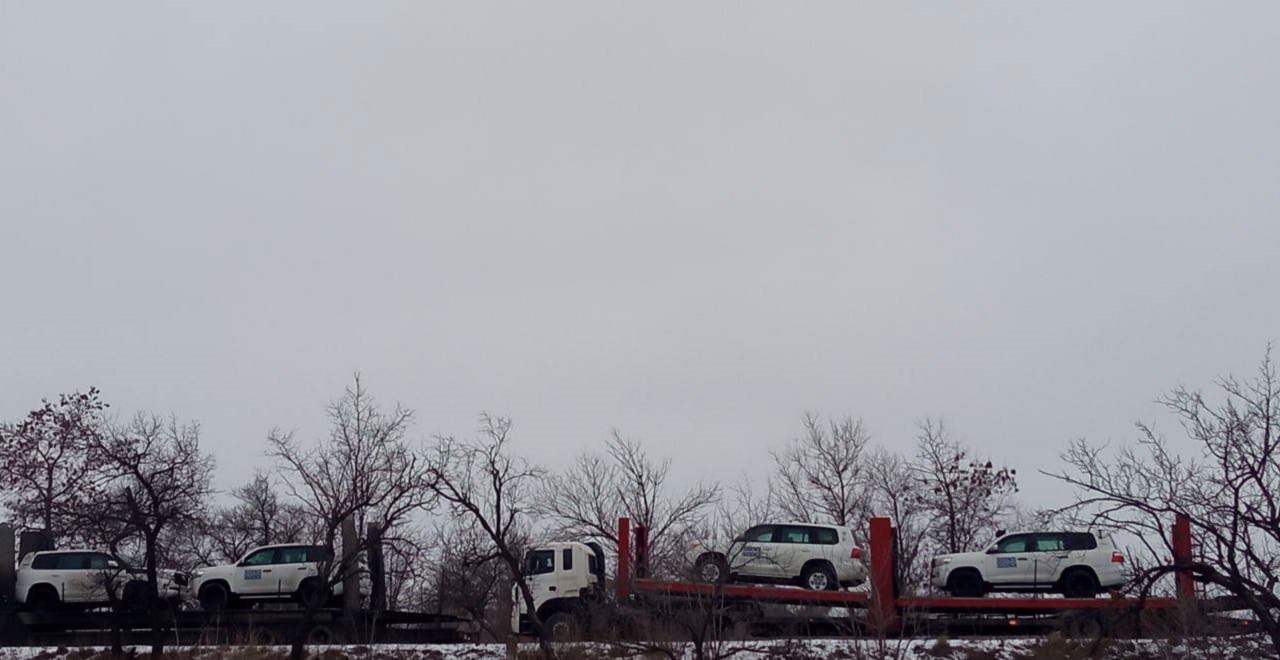 Об этом сообщил журналист Андрей Цаплиенко на своем Telegram-канале, опубликовав фото с трейлерами-автовозами, в которых находились авто с маркировкой ОБСЕ.