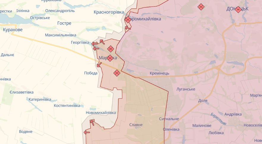 На Марьинском направлении Силы обороны продолжают сдерживать врага в районах Георгиевки, Победы и Новомихайловки Донецкой области, где отбиты 15 атак.