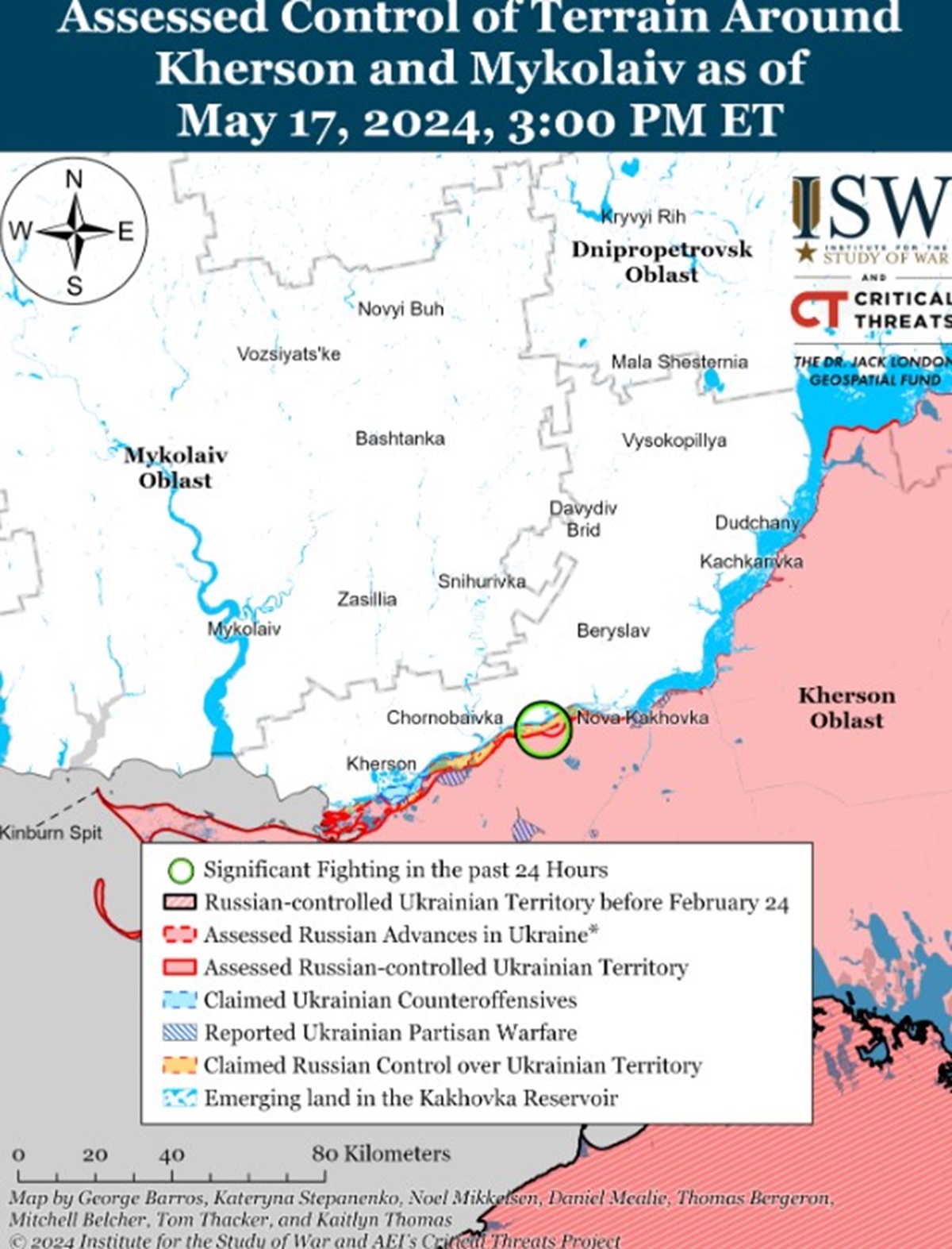 По словам Плетенчука, 17 мая ВС РФ активизировали обстрелы вблизи ограниченного украинского тактического плацдарма в Крынках, но ВСУ не потеряли позиции в этом районе. Он отметил, что за последние дни российская армия не пыталась штурмовать остров Нестриги в дельте реки Днепр.