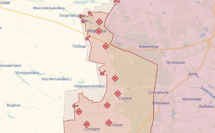 На Марьинском направлении украинские воины продолжают сдерживать противника недалеко от Георгиевки, Победы и Новомихайловки Донецкой области, где отбиты 22 атаки.