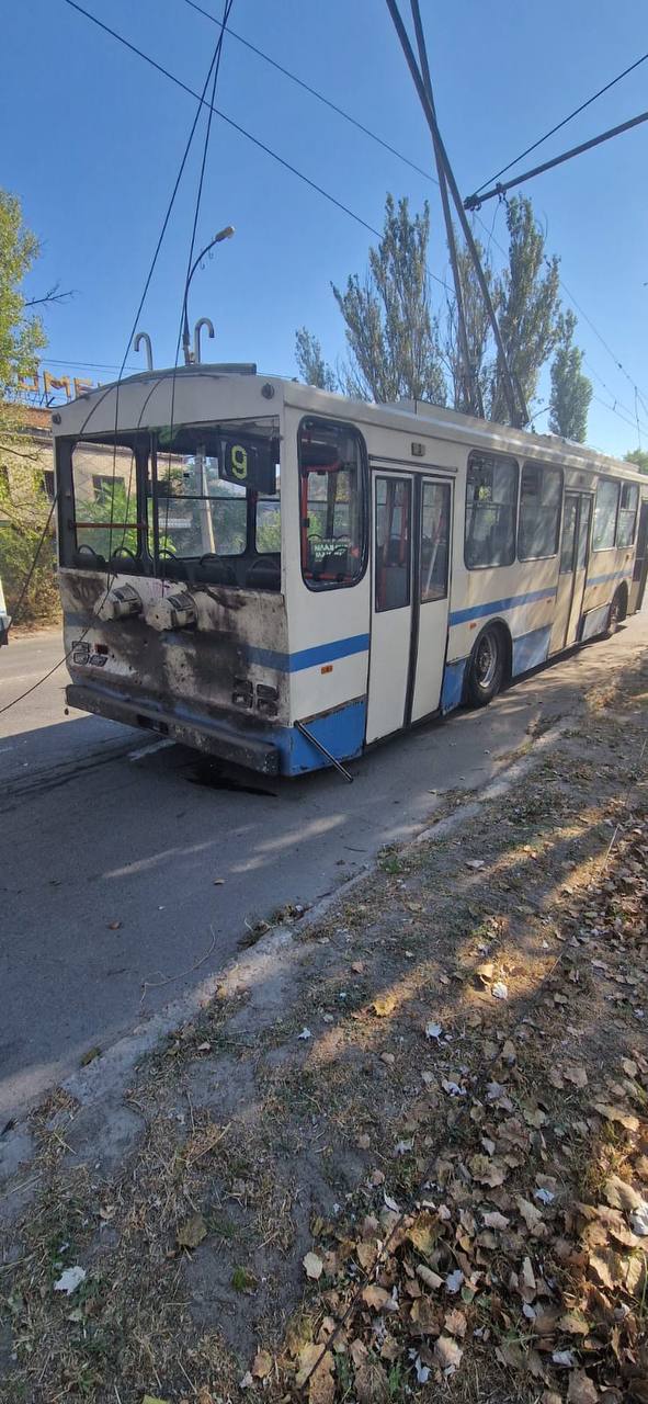 Во вторник утром российские оккупанты обстреляли Корабельный район Херсона, попав в троллейбус №9 на ул. Нефтяников.