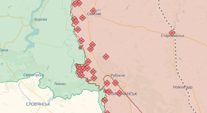 На Лиманском направлении отражено 13 атак, осуществленных противником при поддержке авиации, в районах населенных пунктов Твердохлебово, Невское и Серебрянского лесничества Луганской области; Терны, Торское и южнее Заречного Донецкой области.