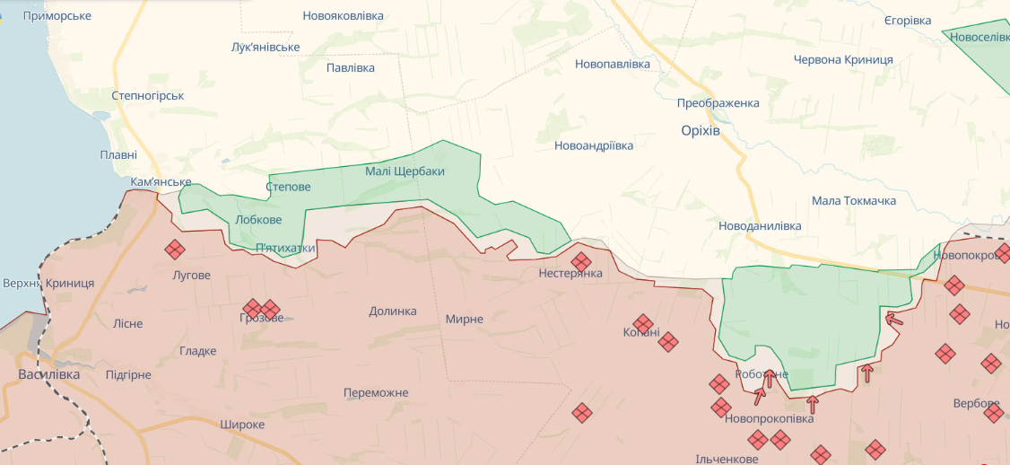 Таким образом, российские войска создают "точку напряжения" на этом направлении. Не исключено, что армия страны-агрессора планирует продвинуться в сторону города Орехов, что повлечет за собой ситуацию с возможным окружением Сил обороны Украины.
