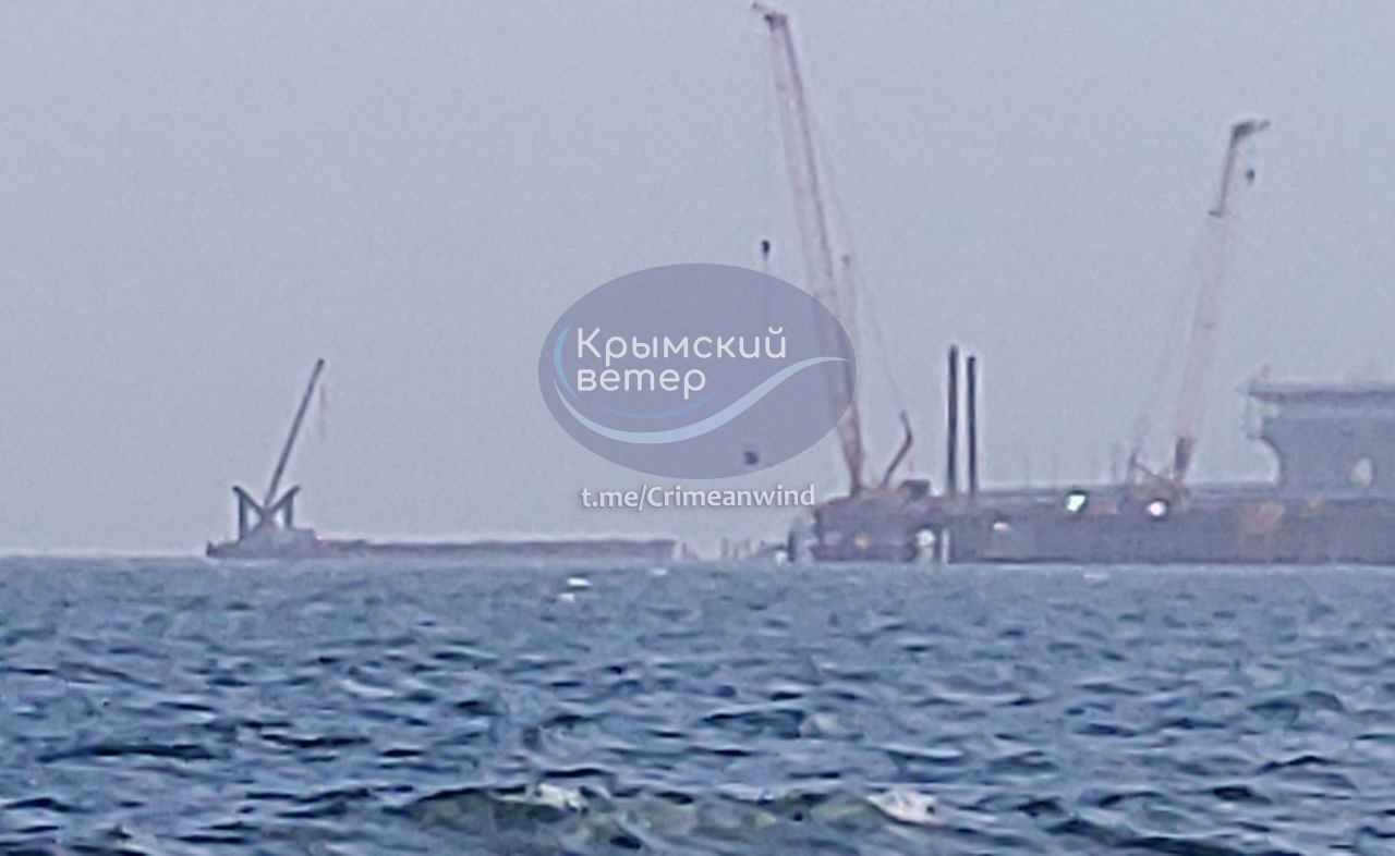 "На судах и баржах подвозят сваи, которые забивают в дно. Фактически, вдоль основного моста строят параллельно еще один мост, назначение которого пока неизвестно", - сообщает телеграм-канал.