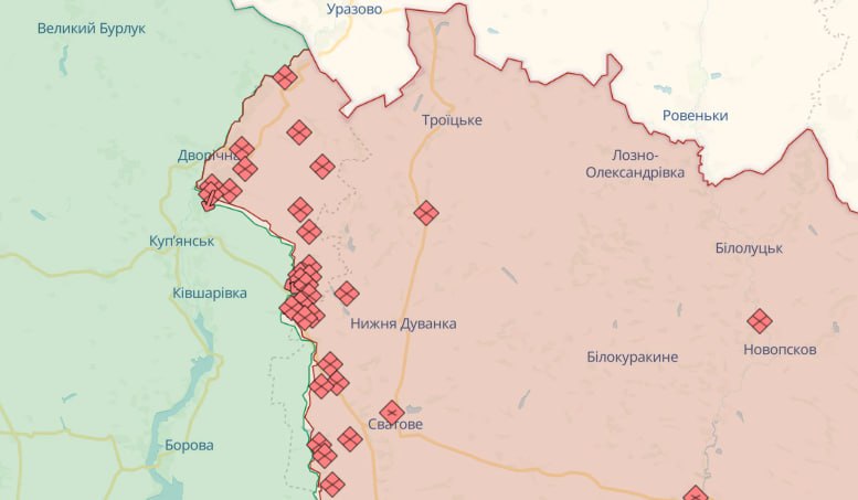 На Купянском направлении нашими воинами отражены 14 атак в районах населенных пунктов Петропавловка, Ивановка, Кисловка, Котляровка, Берестово, Копанки Харьковской области; Стельмаховка Луганской области.