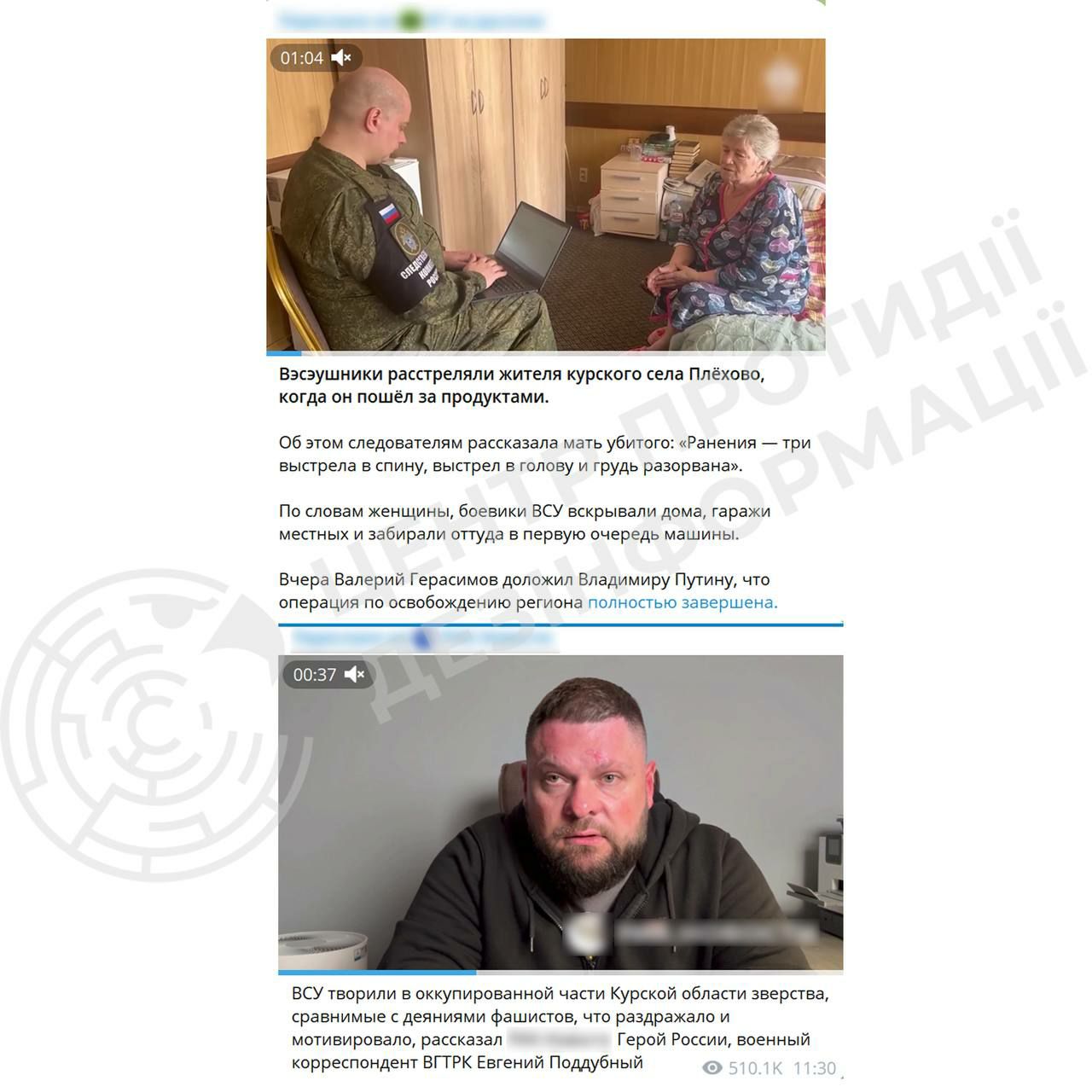 Российская пропаганда массово распространяет фейки о якобы убийствах и расстрелах мирных жителей украинскими военными в Курской области России.