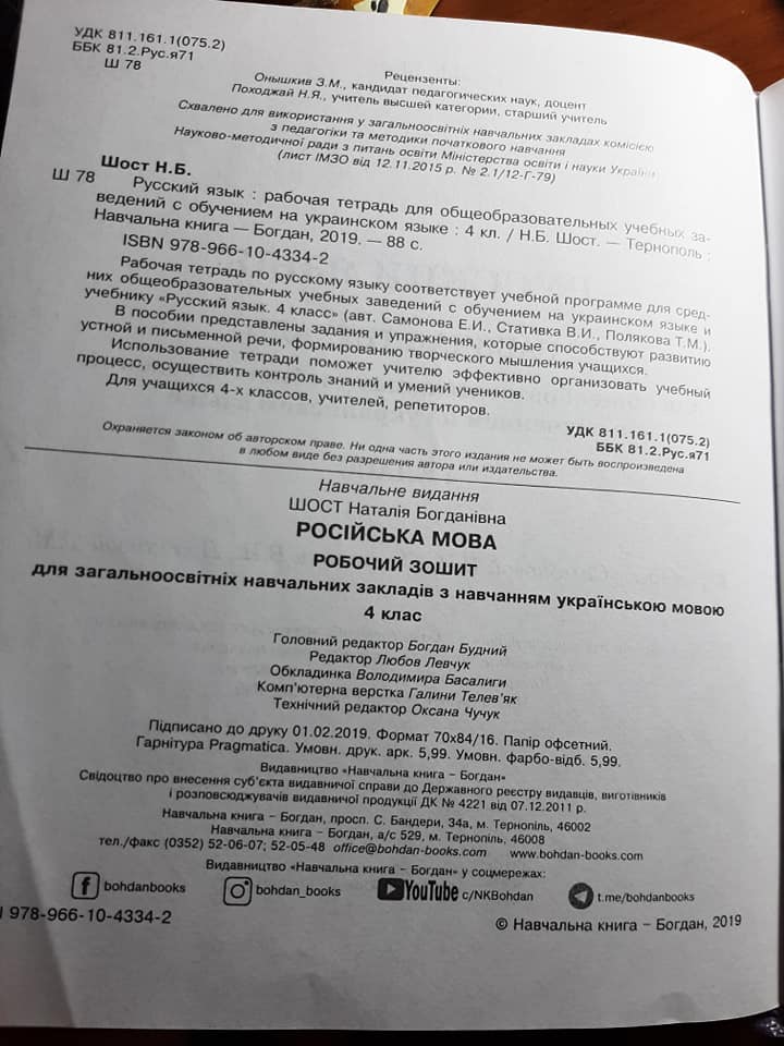Фото страницы рабочей тетради, изданной в Украине и одобренной Министерством образования, опубликовано в группе "Батьки SOS" в соцсети Facebook.