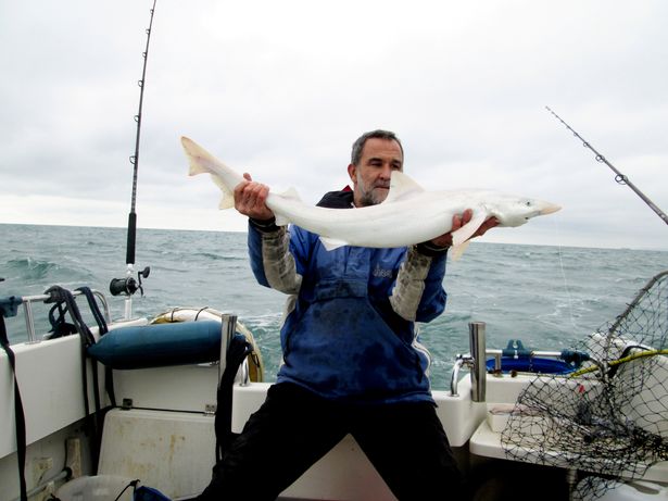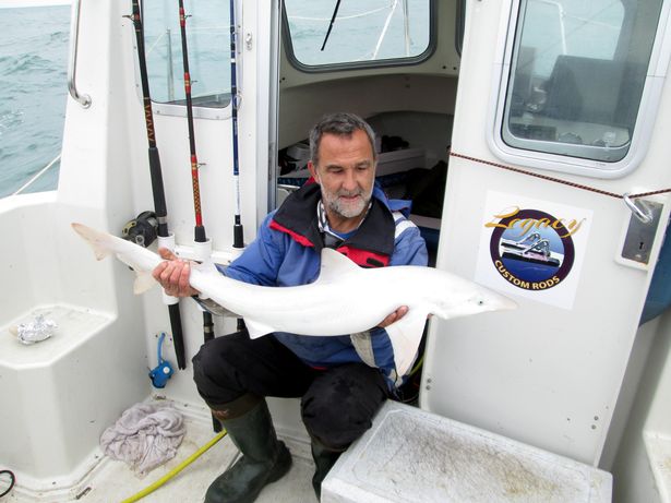 Такой улов 50-летний Джейсон Гиллеспи поймал у берегов острова Уайт, когда рыбачил с друзьями в открытом море. Акула была размером около метра, и это первый вид "альбиноса", пойманный у берегов Британии.