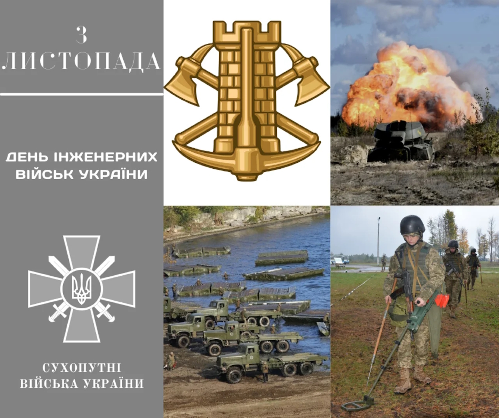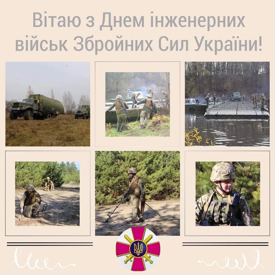Шановні солдати та офіцери Інженерних військ! Дякуємо вам за службу та бажаємо живими та здоровими повертатися до сімей! Дякуємо за службу в найнебезпечніших участках фронту та за виконання небезпечних завдань на фронті та в тилу. Хай ворог зникне, а відзнаки на погонах у вас збільшуються.