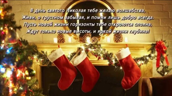 Поздравляю с Днем Святого Николая. Желаю жить в гармонии и мире, желаю дарить близким любовь изаботу, желаю впускать в свое сердце радость и вдохновение. Пусть Святой Николай хранит тебя, твою семью, пусть твоя добрая душа всегда велит тебе поступать благородно и жить счастливо!