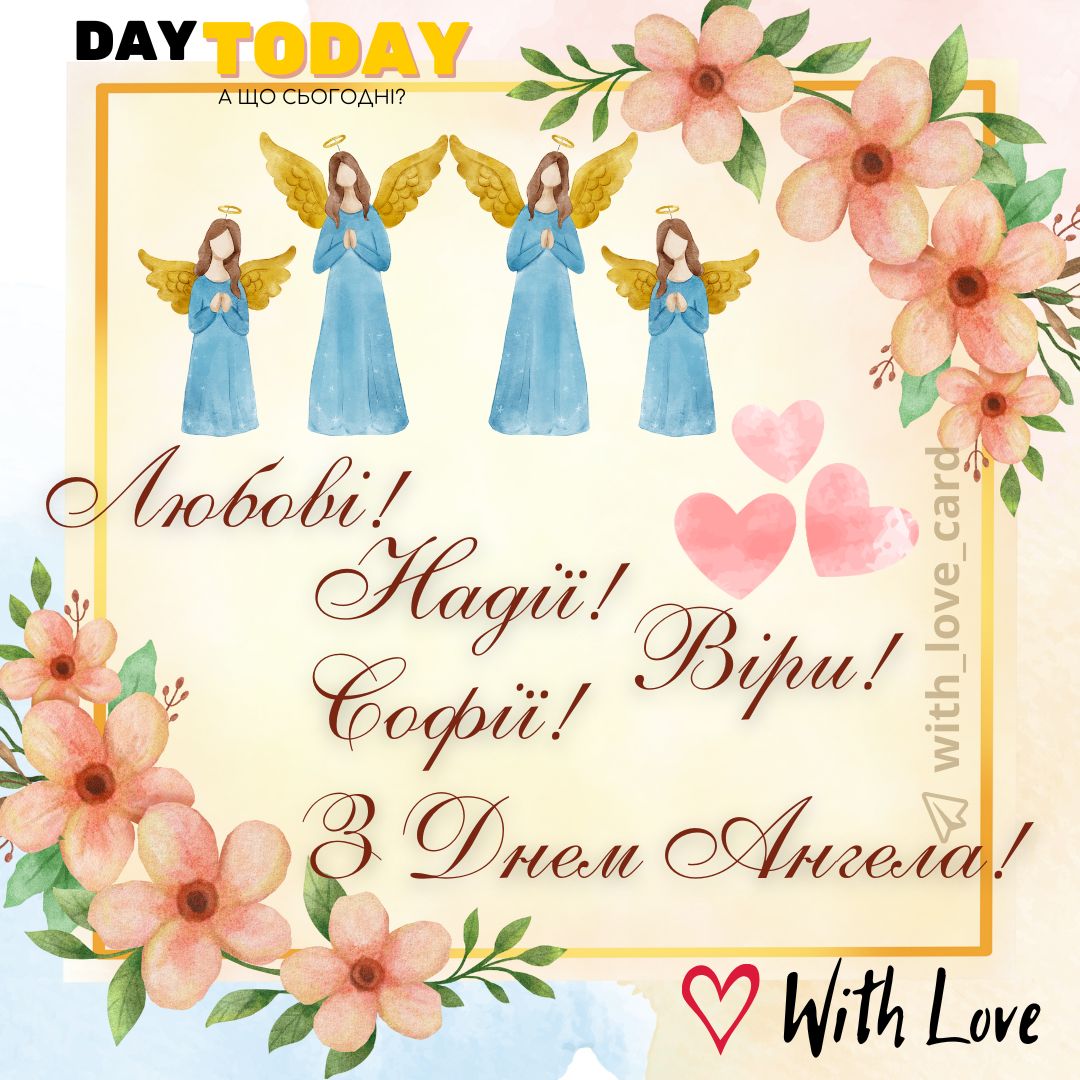 В данный церковный праздник чтят память этих святых мучениц, которые жили в Риме во II веке. Эти женщины даже под угрозами жестоких пыток и смерти не поддались уверовать в языческих богов. После этого Церковь признала Веру, Надежду, Любовь и их мать-вдову Софию покровительницами всех женщин.