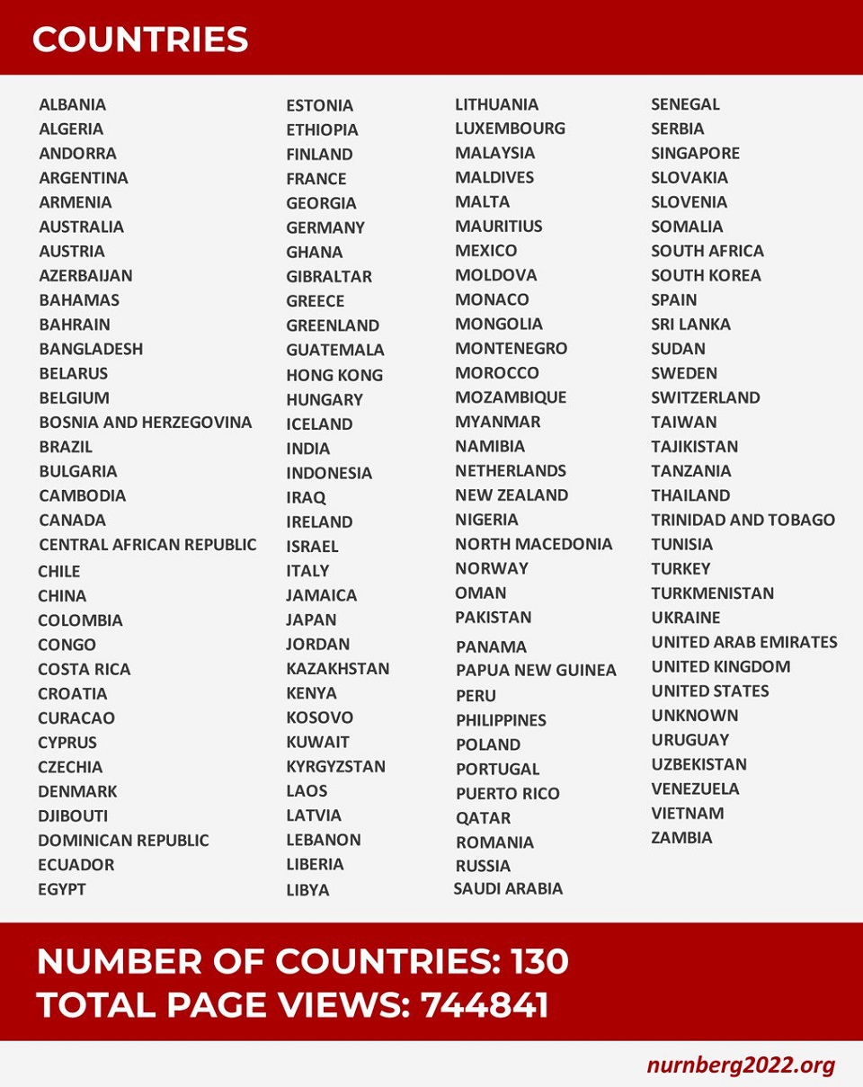 Сайт просматривали жители всех стран Европы, Соединенных Штатов Америки, Израиля, Японии. Кроме того, жители Австралии, Индонезии, Новой Зеландии и ряда стран Африканского континента.