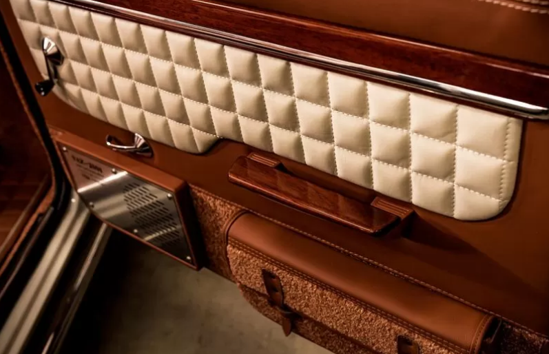 Грили акустических динамиков тоже изготавливались с нуля специально для проекта. Также в авто установили необычные карманы на спинках передних кресел и панелях передних дверей.
