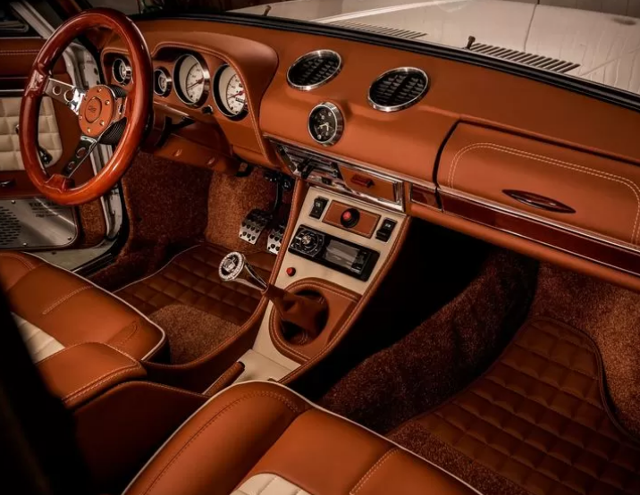 Оригинальная центральная консоль была спроектирована ими специально для этого автомобиля. На ней размещается новый рычаг коробки передач, магнитола и еще пара кнопок управления.
