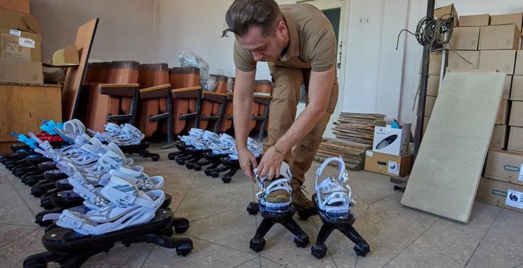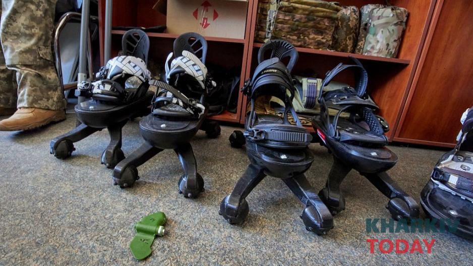 Харьковские инженеры из "Украинского рессорного центра" изготавливают специальную обувь для военных саперов, которая выглядит как сандалии на толстой платформе, что установлена на четыре прочные ножки и позволяет наступить на противопехотную мину, но при этом сохранить ногу.