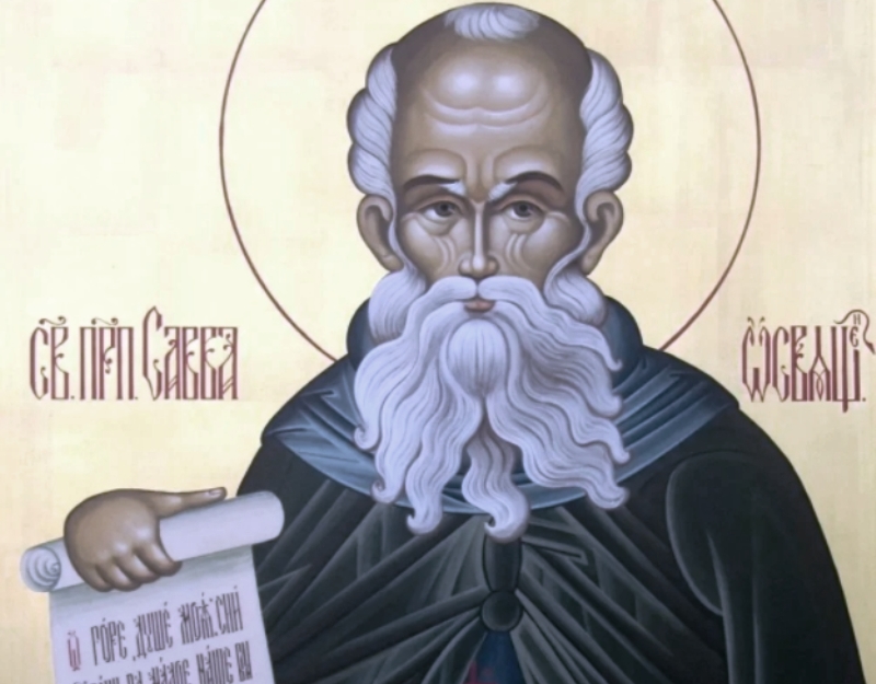 Святой Савва родился в 439 году, в детстве был отправлен родителями в Александрию, затем стал послушником в монастыре, а в 17 лет был подстрижен в монахи. Уже в зрелом возрасте он на 5 лет ушел от мирской жизни в пещеры. К Савве начали ходить ученики, на месте паломничества образовалась Великая Лавра. Савва, по преданиям, исцелял людей и наставлял на путь истинный.