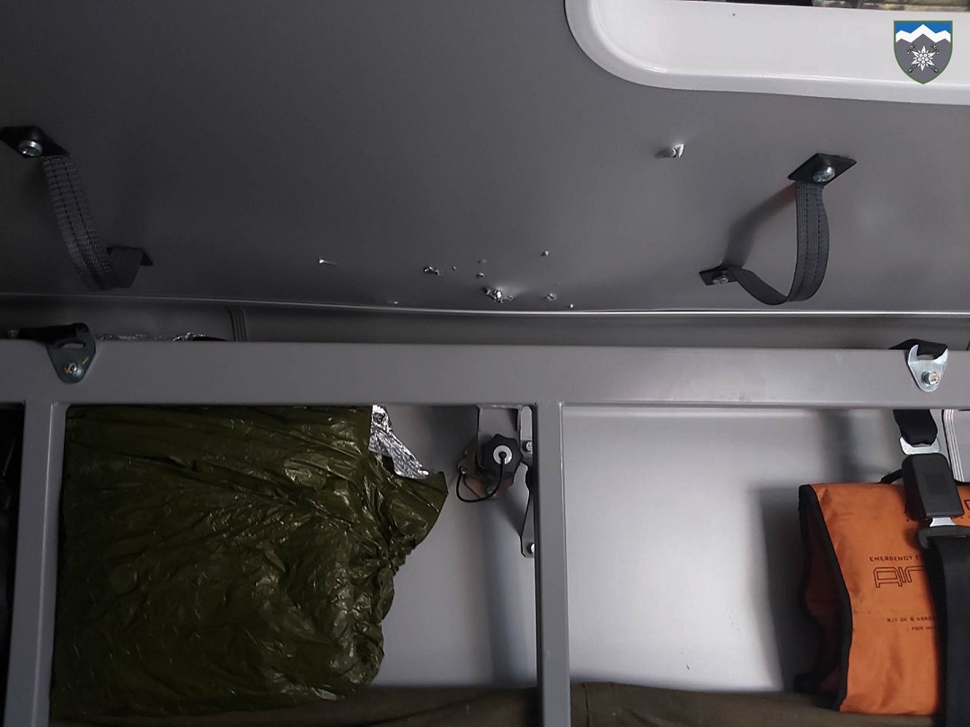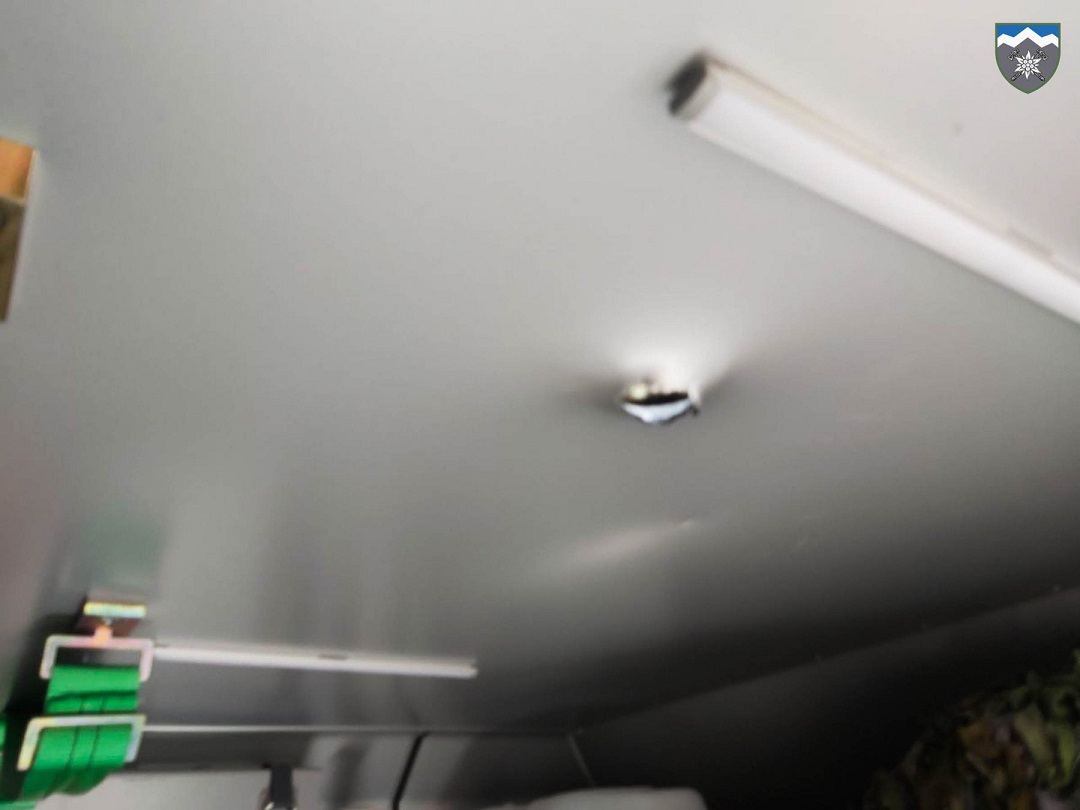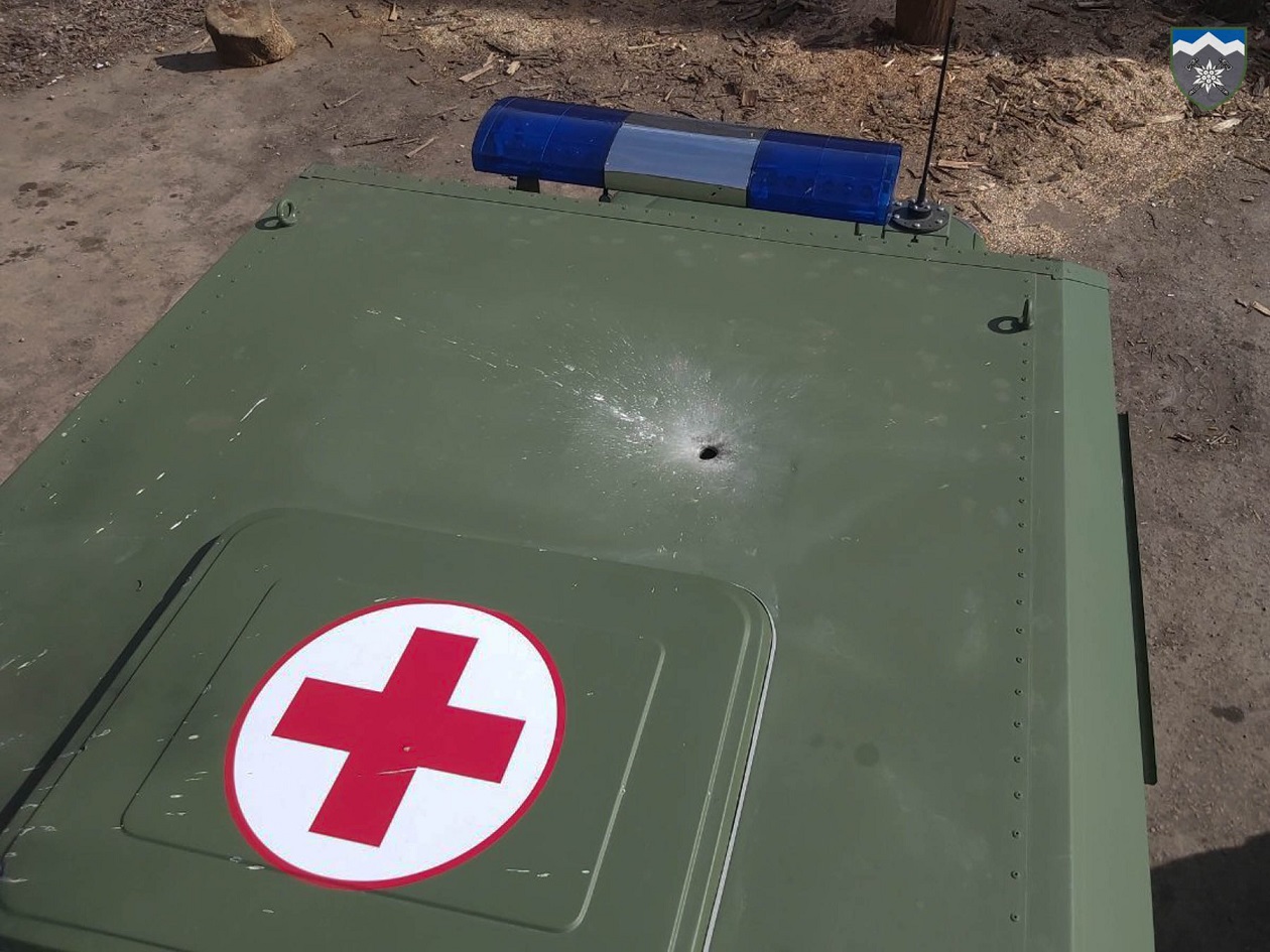 Как сообщили в бригаде, из-за обстрела никто не пострадал. Судя по фото, повреждения получил только автомобиль, у которого пробита крыша кузова рядом с нарисованным красным крестом.