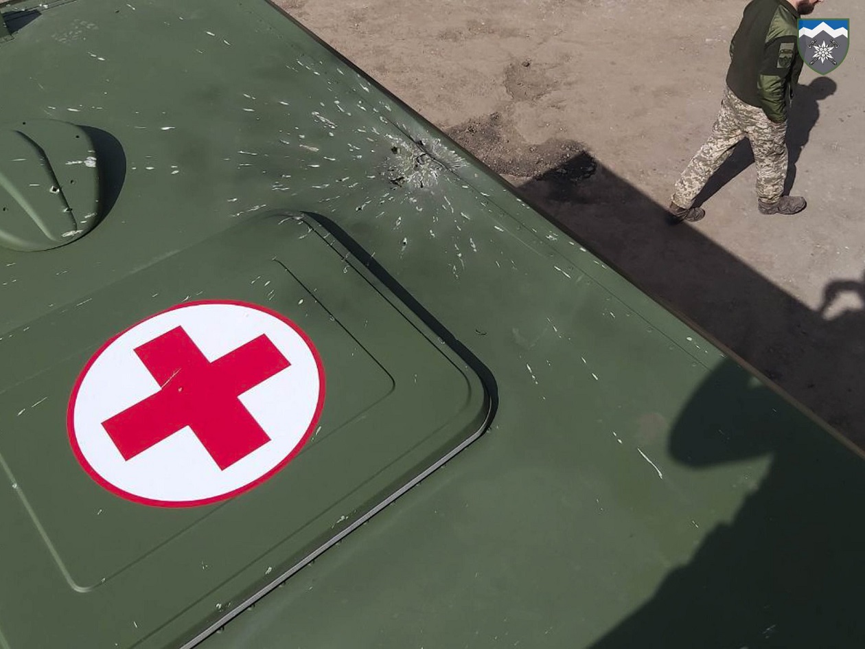 "Цинично наплевав на все международные законы и обычаи ведения войны, с помощью беспилотных летательных аппаратов сбросили две гранаты на санитарный автомобиль. На котором четко видно соответствующую маркировку и имеющиеся проблесковые маячки. Ошибиться в этом случае вообще было невозможно!!!" - возмущаются подлыми действиями боевиков украинские военные.
