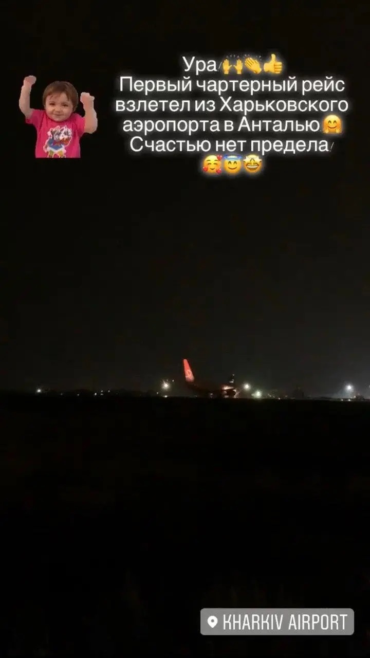 "Ура! Первый чартерный рейс вылетел из харьковского аэропорта в Анталию. Счастью нет предела", – подписан один из снимков из аэропорта.