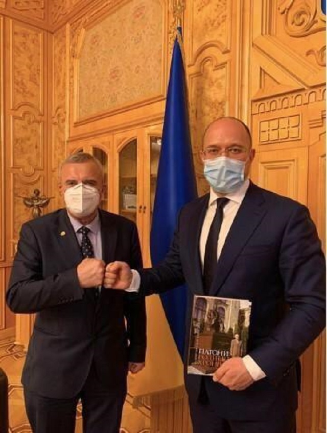 Вице-президент НАН Украины академик Анатолий Загородний и премьер-министр Украины Денис Шмыгаль