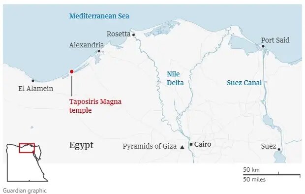 Археологи обнаружили на территории древнеегипетского храма Тапосирис Магна две мумии высокопоставленных лиц времен Клеопатры, после чего выдвинули предположение о месте захоронения последней правительницы Древнего Египта.