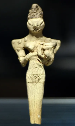 Фигурка женщины с головой кормящей ящерицы ребенка, датированная периодом убаидов, примерно 4000 г. до н.э., из Музея Ирака.