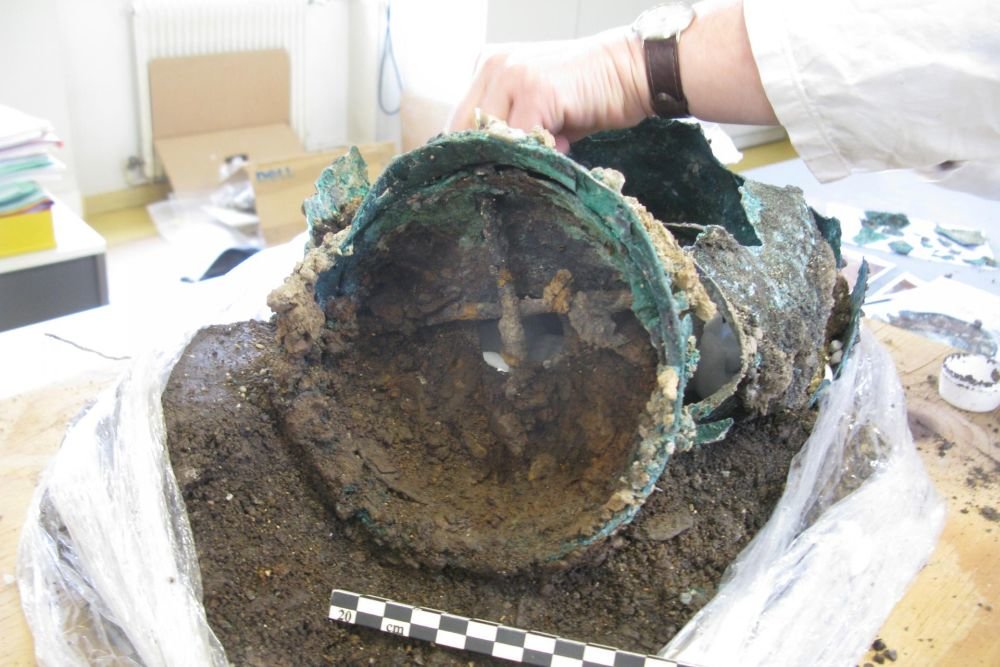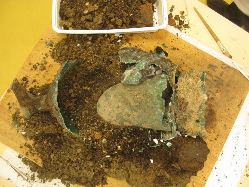 Он был обнаружен при обследовании руин здания, построенного во второй половине I века нашей эры. Оно было уничтожено пожаром в конце II века. Вероятно, с тех пор самовар там и лежал.