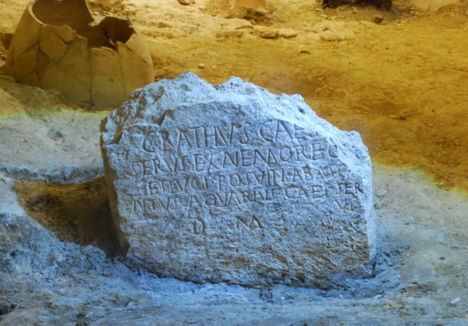 Рядом была найдена мраморная похоронная святыня с портретом маленького ребенка Тиберия Натрония Венера, которому было четыре года, четыре месяца и десять дней, когда он умер.