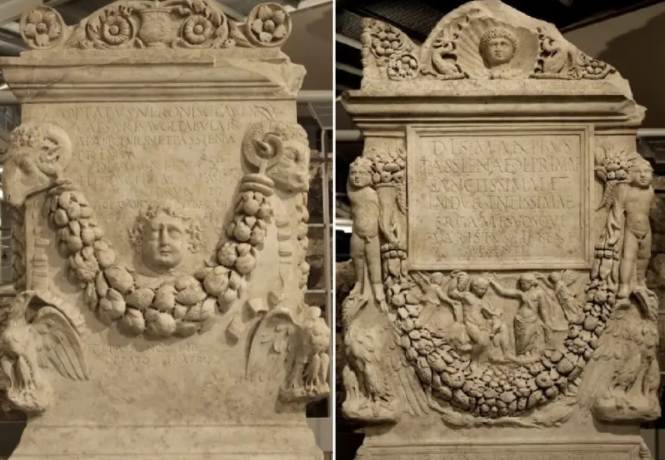 Два примера сохранившихся погребальных памятников из некрополя Санта-Роза, которые были обнаружены недавно, иллюстрируют некоторые из этих тенденций, одновременно открывая окно в римскую похоронную культуру и искусство, связанное с вольноотпущенниками, то есть людьми, которые были бывшими рабами.