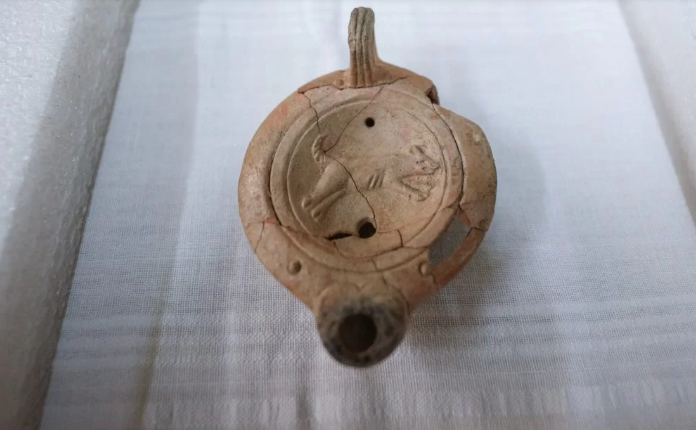 В гробнице Маркоса нашли редкие артефакты, которые были захоронены вместе с оракулом: флакон духов, тарелка, свеча и инструмент для соскабливания, называемый стригилисом.