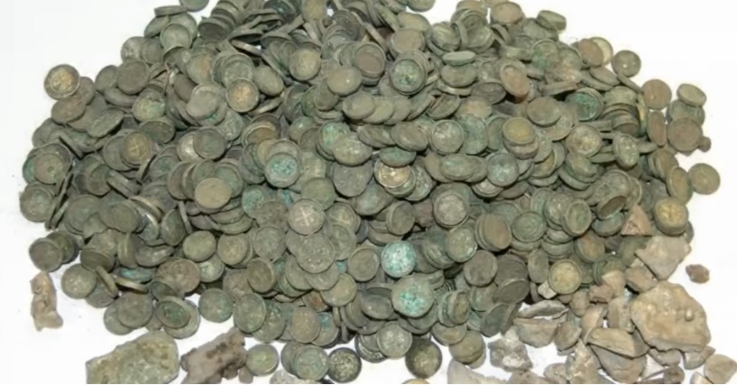 Внутри горшка, спрятанного под землей, археолог обнаружил 6500 серебряных монет, разложенных в льняных мешочках, серебряные слитки, фрагменты свинца, а также два золотых кольца и два обручальных кольца. На одном из колец есть надпись кириллицей, которая гласит: "Господи, можешь помочь своей рабыне Марии".