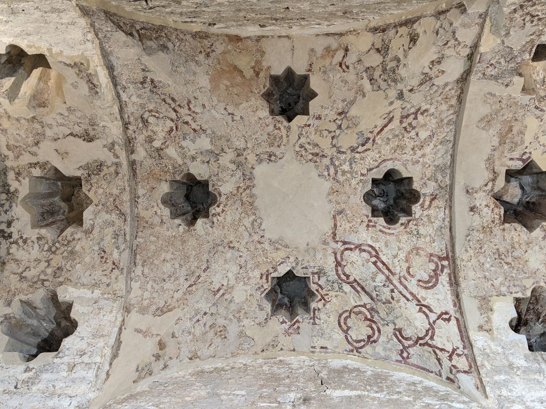 Рабочие наткнулись на древнюю находку, когда снимали слой штукатурки со сводчатого потолка.