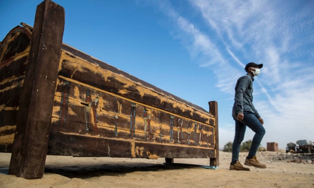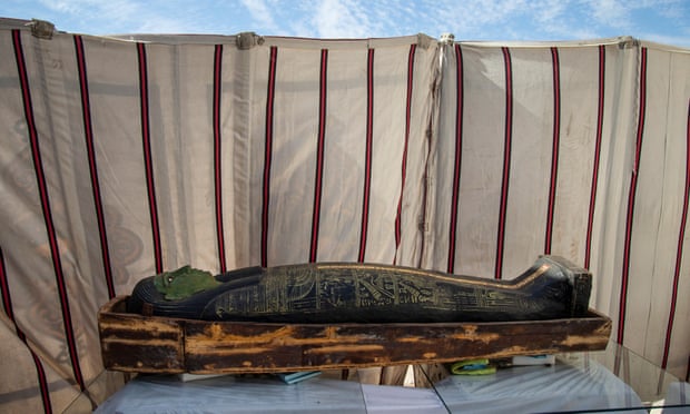 Запечатанные деревянные гробы обнаружили рядом со статуями древних божеств, их возраст - более 2500 лет, вероятно, они принадлежали высшим чиновникам позднего периода и периода Птолемеев древнего Египта.