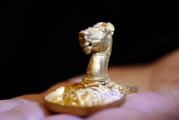 Среди артефактов, датируемых концом IV или началом III века до нашей эры, были золотые украшения и аппликации для конской экипировки, тиара с рельефами львов и фантастических животных, а также четыре браслета и кольцо.