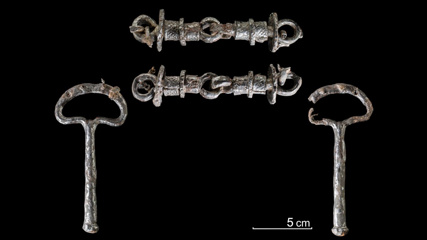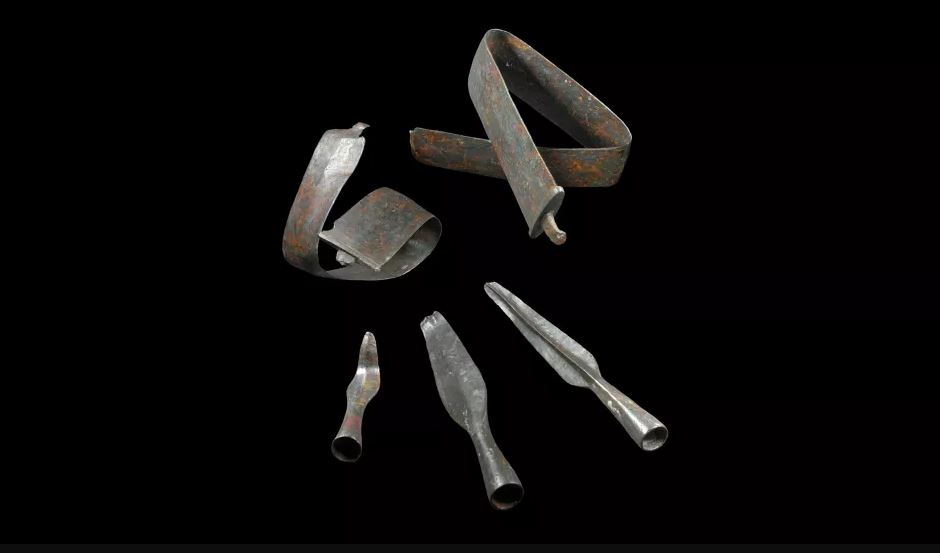 Археологам удалось отыскать 40 копий и наконечников, мечи, фрагменты щитов, три серебряные монеты, бронзовые украшения, часть лошадиной упряжи для управления боевой колесницей, а также несколько фрагментов тел.