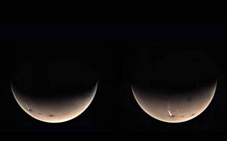 На снимках, которые передала космическая станция Mars Express, видно, что шлейф берет свое начало то ли прямо из жерла вулкана, то ли где-то рядом.