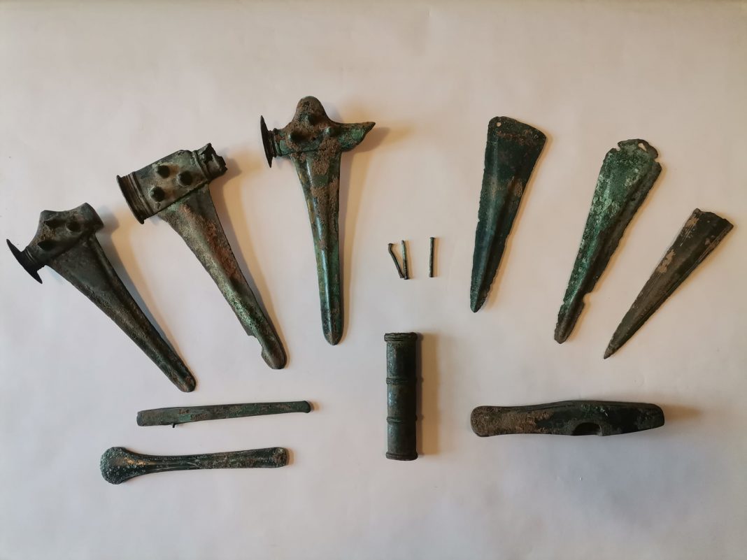 Исследователи нашли три скипетра, три бронзовых кинжала, топор, зубило и несколько связанных с ними металлических артефактов. Предполагают, что это были украшения для высокопоставленных лиц, а не экипировки солдат или предметы широкого бытового использования.