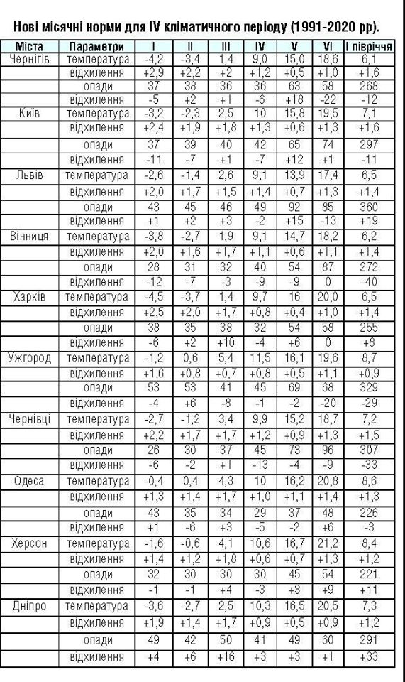 Игорь пишет, что издание с января этого года в первых числах ежемесячно в информации о погоде публикует новые климатические нормы температуры воздуха и осадков за период 1991-2020 гг. в Киеве.