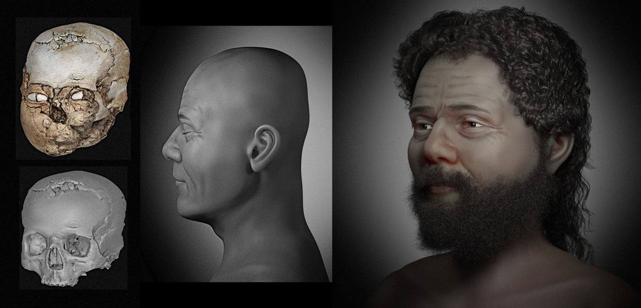 Представляя свое открытие, ученые продемонстрировали две версии: в оттенках серого с закрытыми глазами и без волос, а также более реалистичную, имеющую карие глаза, темные волосы и густую бороду.