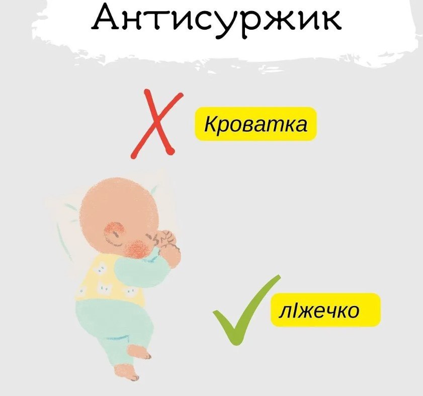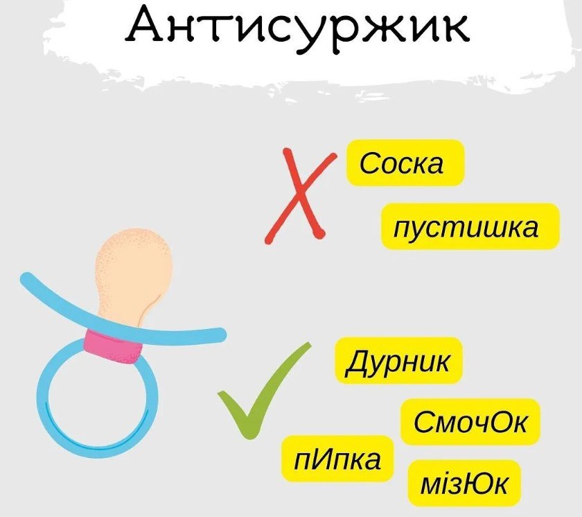 Названия для детских принадлежностей "соска", "пеленка", "кроватка", "коляска" и "бутылочка", являются русизмами и так укоренились в нашем быту, что большинство украинцев даже не представляют, какие соответствия есть у них есть в украинском языке.