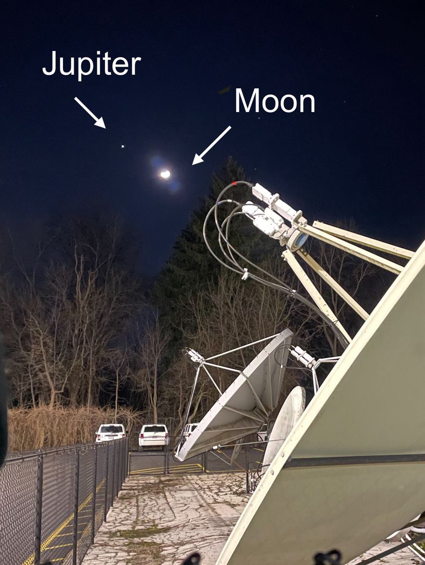 В ночь на 15 февраля Луна и Юпитер "отправились" на свидание на ночном небе.
