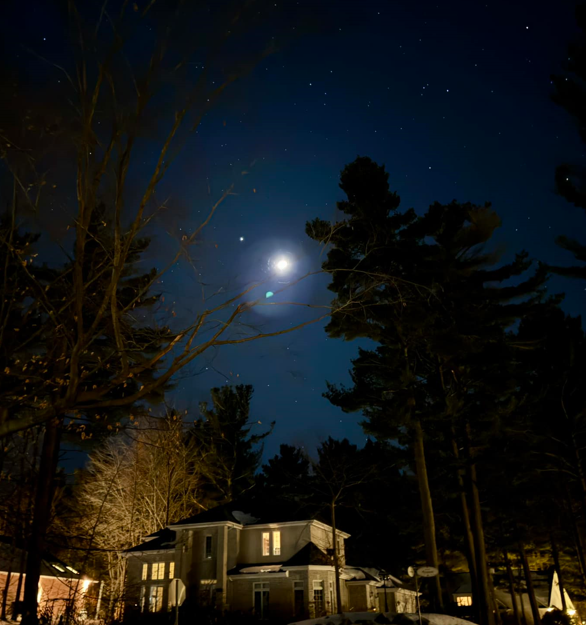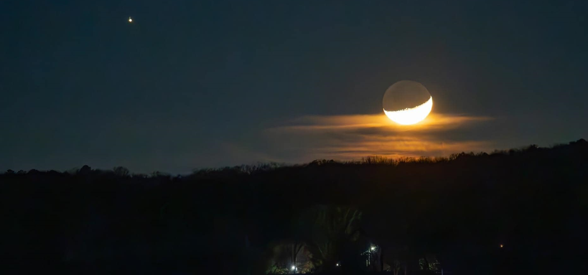 Этой ночью их можно было увидеть очень близко друг к другу на небе. Однако, несмотря на относительно близкое расположение на небосклоне, их разделяют сотни миллионов миль.