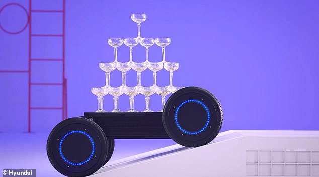 В рекламном видео для устройства можно увидеть, как оно несет ребенка и пересекает холм, будучи нагруженным пирамидой бокалов с шампанским.