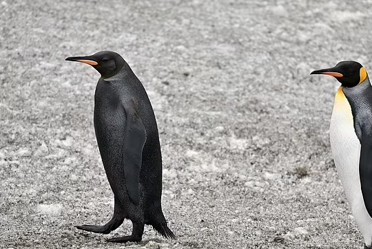 На пляже острова Южная Джорджия в Атлантическом океане заметили необычного пингвина - удивительная птица почти полностью покрыта темными перьями из-за генетической мутации. Эта мутация под названием меланизм возникает из-за избытка меланина, поэтому перья выглядят полностью черными.