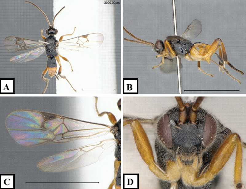Это насекомое, также известное под научным названием Microgaster godzilla, ищет водных гусениц, которые живут в воде и прячутся внутри водорослей и других растений. Когда оса находит их, она ныряет под воду и атакует снизу. Она может погрузиться в воду на несколько секунд и выталкивает добычу из ее панциря.