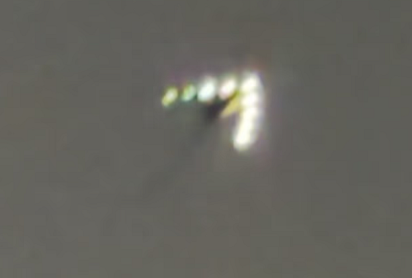 Наблюдение длилось примерно 25 минут: НЛО летело на юг, пока очевидцы наконец не потеряли его из виду. Пара смогла сделать как фотографии, так и видео с помощью камеры мобильного телефона, увеличив изображение, чтобы увидеть девять белых огней вдоль корпуса НЛО.