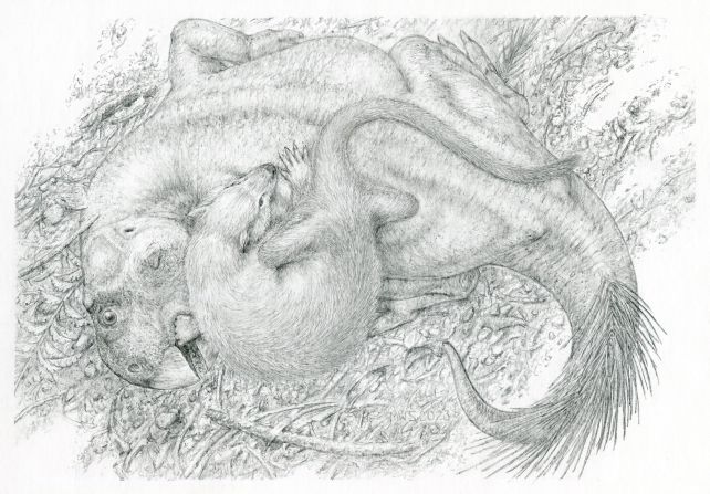 Личность хищника стала неожиданностью: он похож на опоссума и намного меньшее, чем пситтакозавр (Psittacosaurus) - это репеномам, которого называют в научной среде Repenomamus robustus.