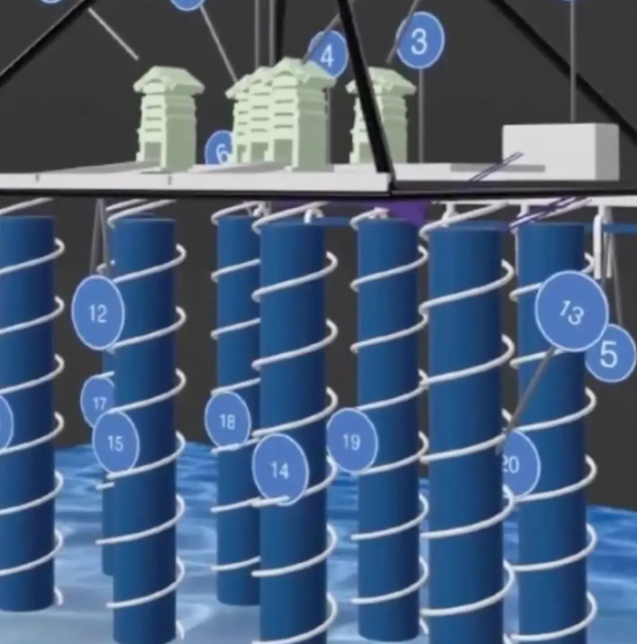 Команда утверждает, что обнаружила восемь вертикальных цилиндрических структур, называемых шахтами, простирающимися примерно на 640 м в глубину под пирамидами. Говорят, что каждая шахта оцеплена спиральными путями, которые соединяются с двумя 80-метровыми структурами в форме куба. Сообщается, что над ними они обнаружили пять многоуровневых структур, соединенных проходами.