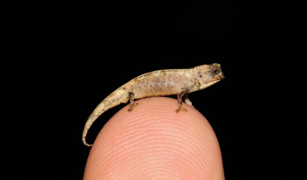 На Мадагаскаре команда исследователей обнаружила новый вид хамелеона настолько маленьких размеров, что рептилия помещается на кончике пальца.